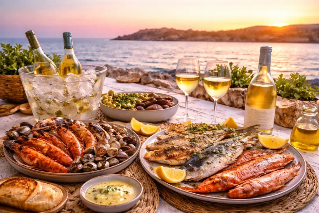 Disfruta de una experiencia gastronómica en Tabarca que combina mariscos frescos y parrillada de pescados de lonja con vinos blancos DOP Alicante, en un entorno con esencia marinera.